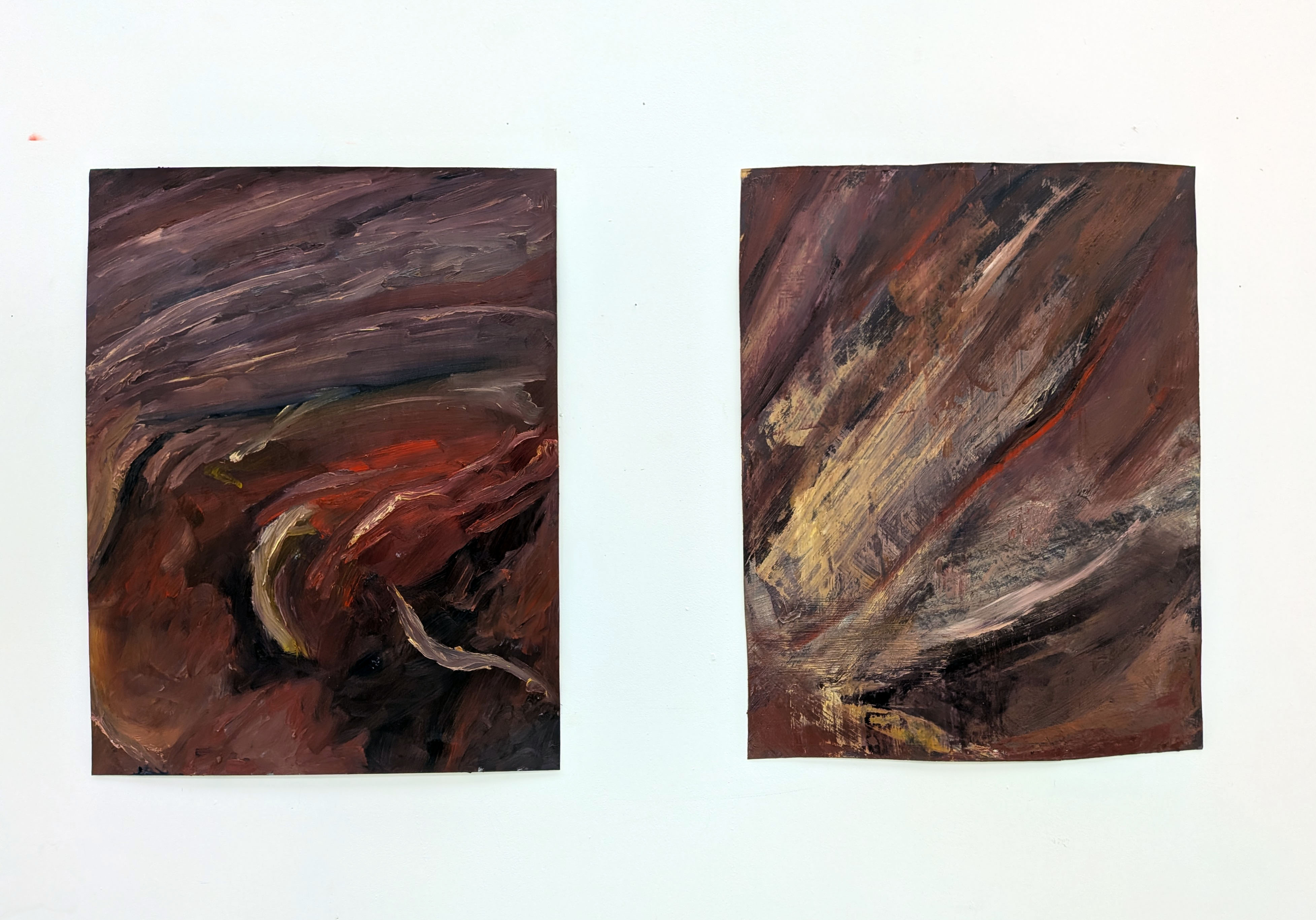 Le témoignage de la peinture à parler de la sensation de l’instant vécue, la consistance ou l’aura de la chose peinte ne peux se transcrire qu’avec une proximité à lui-même, c’est la raison pour laquelle Maxence peint majoritairement d’après motif. Pour lui comme pour l’artiste Anselm Kiefer il ne s’attend pas à un résultat dans son tableau car le tableau constitue un processus. Ce sont des contraintes extérieures qui l’amène à sa finalité.